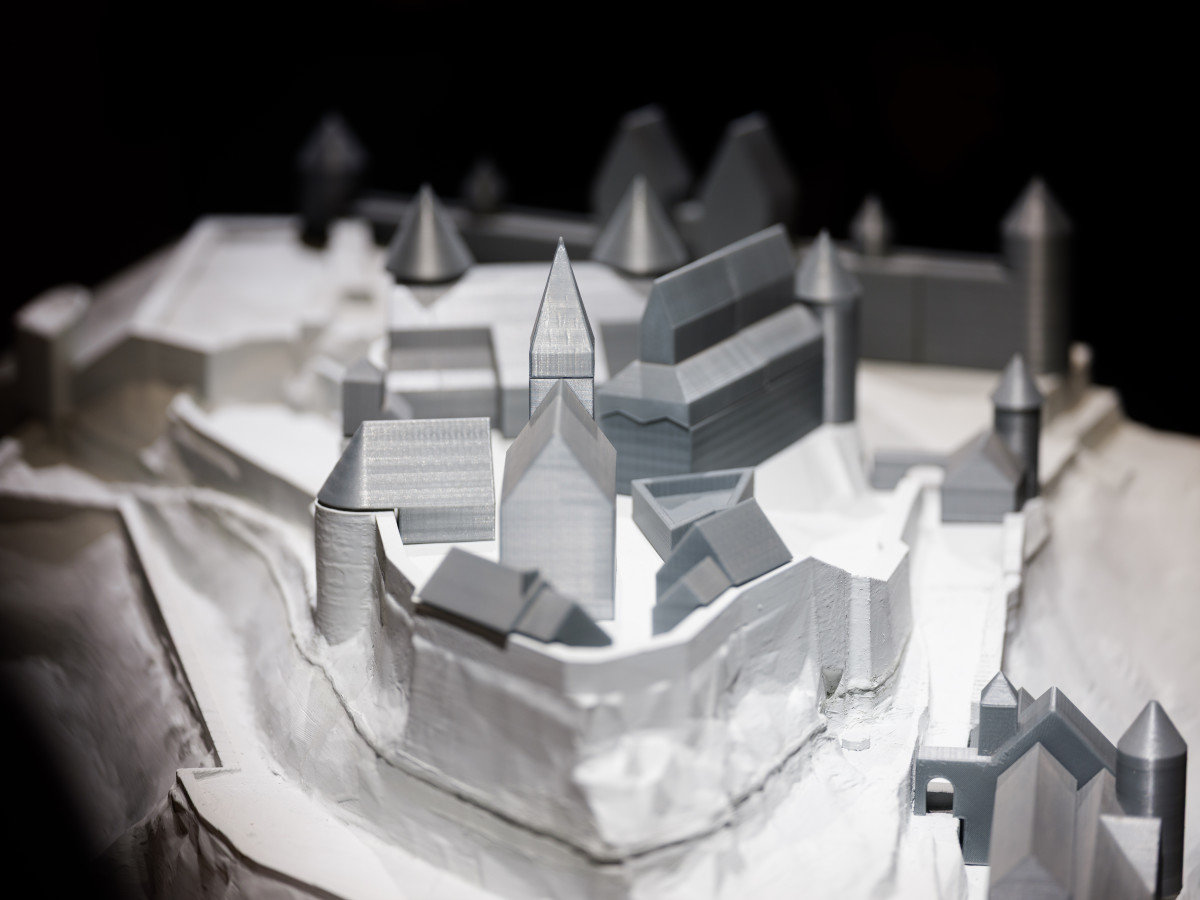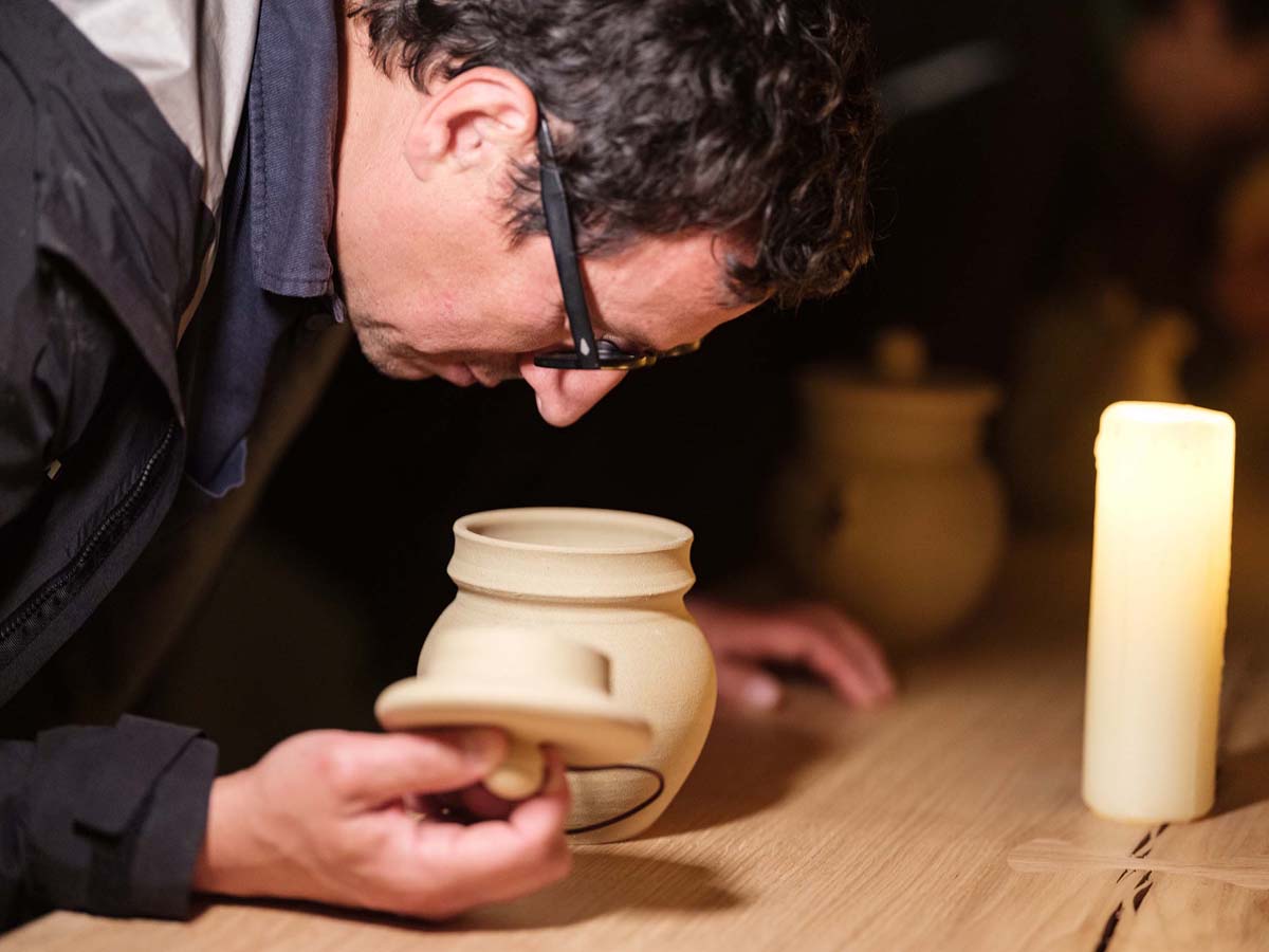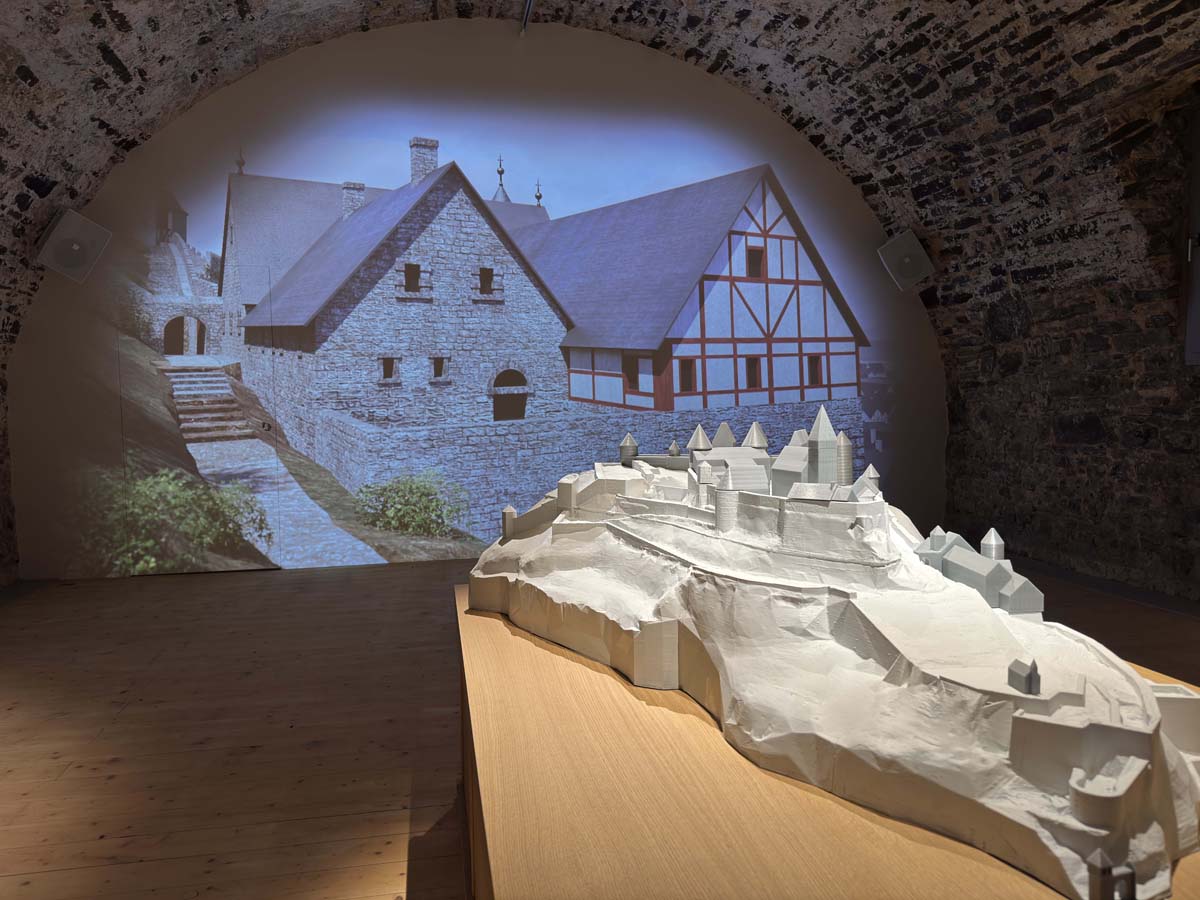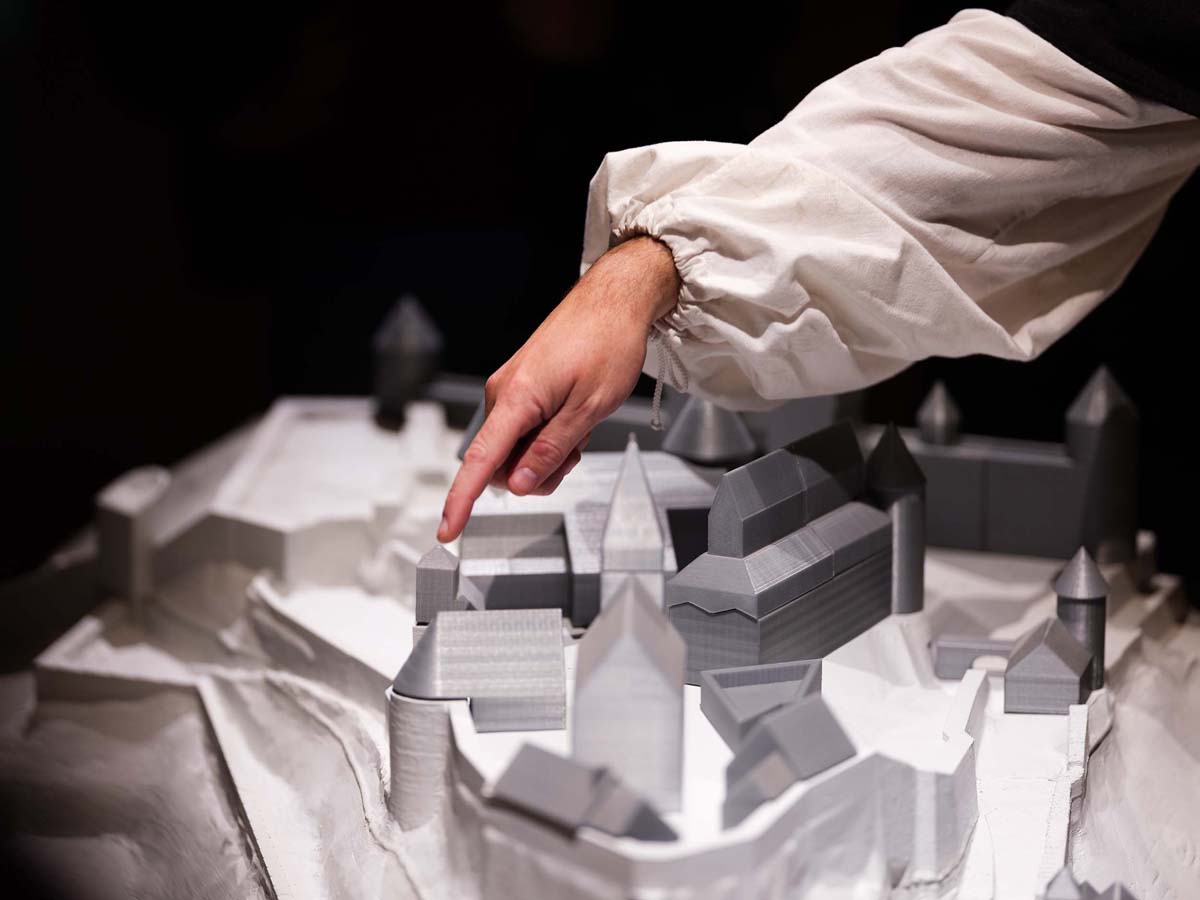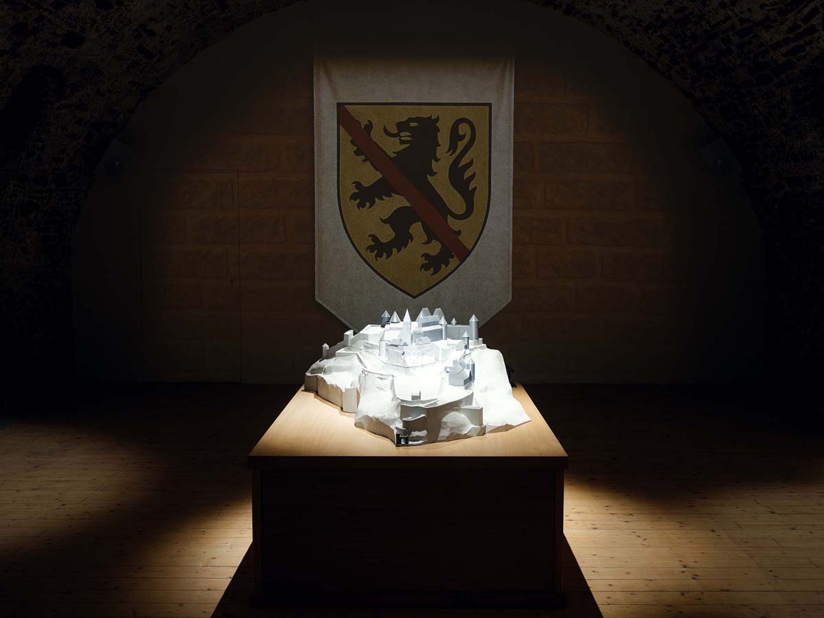 Dès la grande salle, une maquette donne les clés de compréhension d’un lieu à la fois résidence, centre administratif, religieux et militaire. Autour d’un banquet, la vie quotidienne se raconte, entre jeux participatifs, et reconstitutions olfactives qui ouvrent la porte des cuisines et des jardins du comte et de la comtesse.
