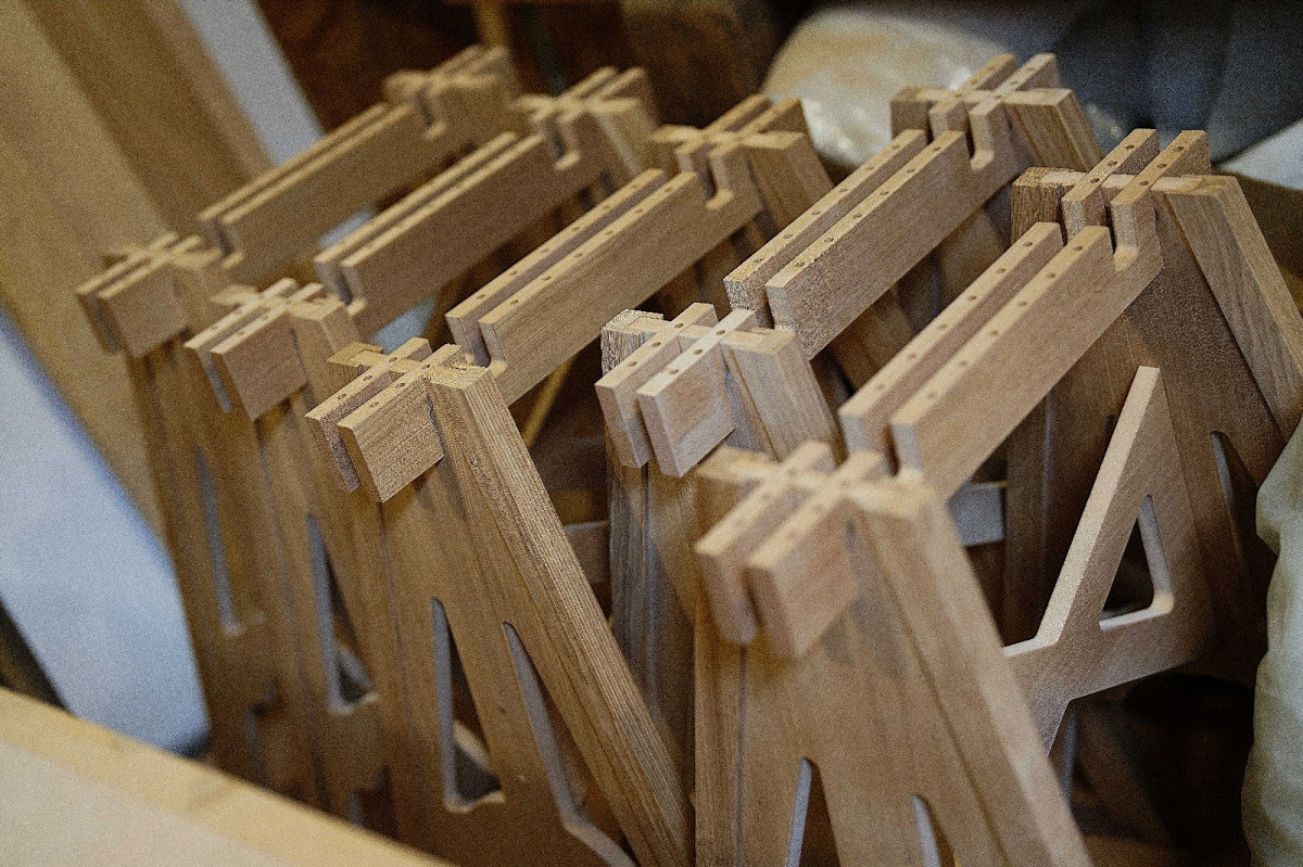Nous avons travaillé en circuit court pour le bois de la construction du mobilier de la visite, en choisissant des essences de bois locales et sourcées à moins de 10km de nos ateliers partenaires.