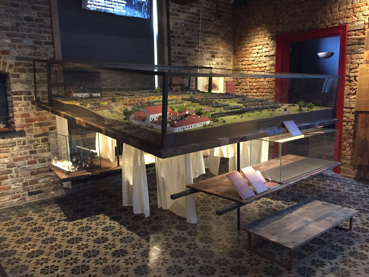 Le concept scénographique incarne l’une des pages dramatiques de ce tournant crucial de l’histoire de l’Europe qu’a été la Bataille de Waterloo, l’un des hauts lieux de l’épopée Napoléonienne. Lors de ce combat livrée le 18 juin 1815 par l’Armée du Nord, emportée par Napoléon, contre l’Armée des Alliés, c’est dans ce corps de ferme qui subsiste encore aujourd’hui que les Alliés avaient implanté un hôpital militaire.