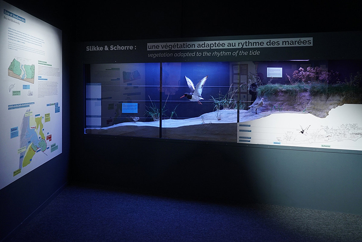 L’expérience de visite s’est ainsi complétée d’outils de médiation interactifs, d’un show immersif d’introduction évoquant la formation de la baie depuis ses origines, de supports pédagogiques dédiés à la gestion des risques spécifiques à cet estuaire et d’une scénographie entièrement repensée : salle consacrée aux phoques, portraits vidéos de personnages du cru. Des jeux originaux ont été créés pour les plus petits, en lien avec les thématiques.