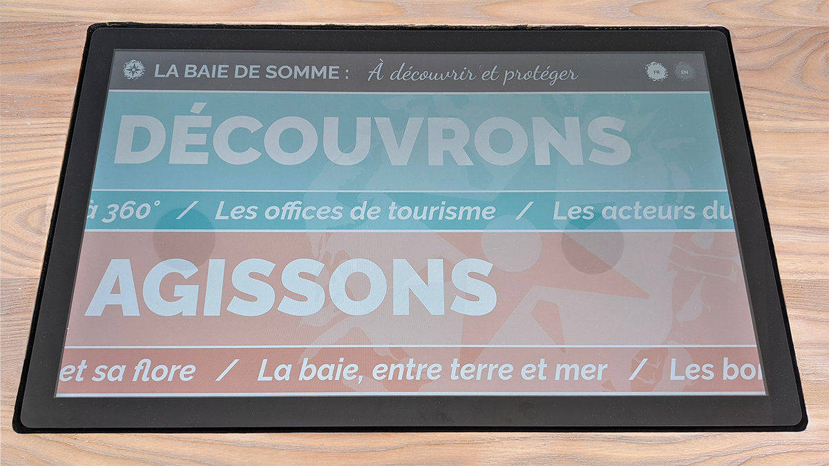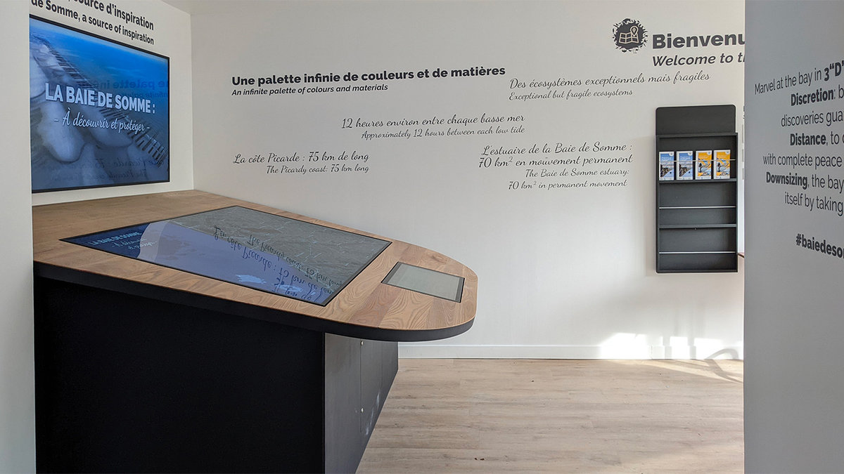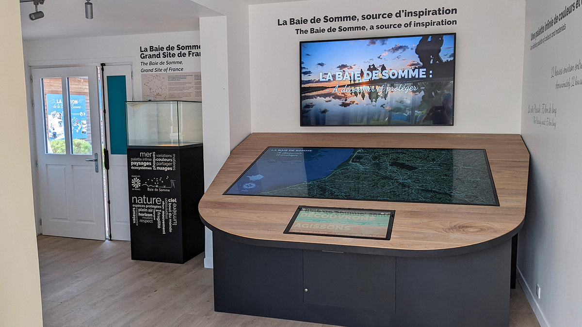 Ce projet s'est ajouté au projet de rénovation de la Maison de la Baie de Somme. Il permet de découvrir la baie de Somme et ses différentes offres touristiques de façon interactive. Nous y avons conçu et réalisé le mobilier, l’habillage graphique et les nombreux contenus numériques qui permettent une consultation approfondie.