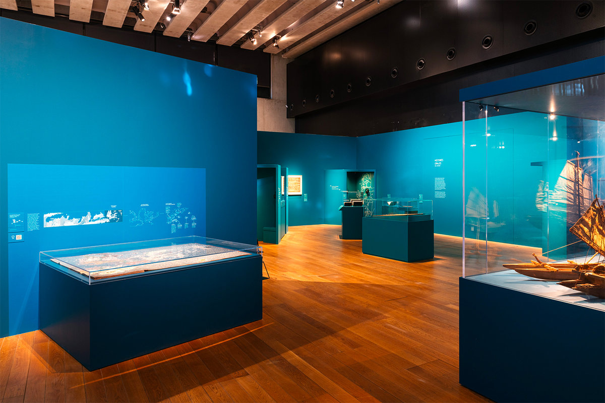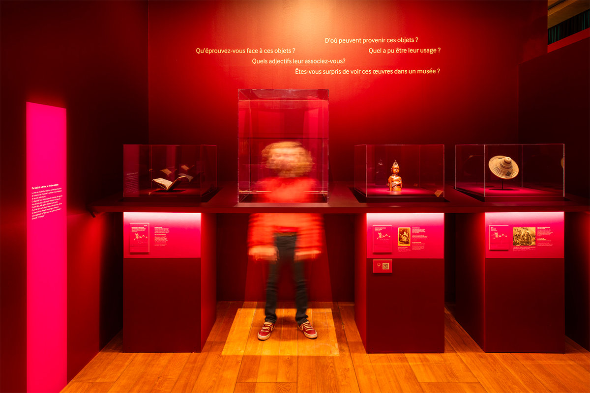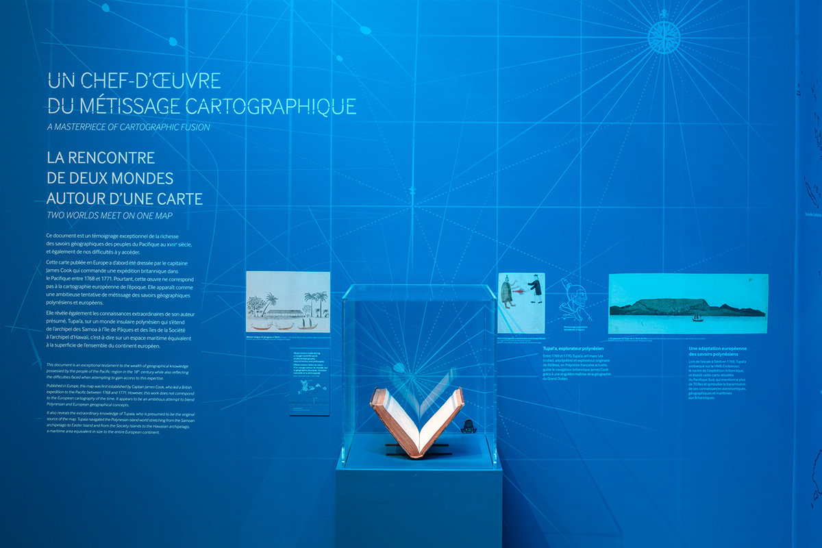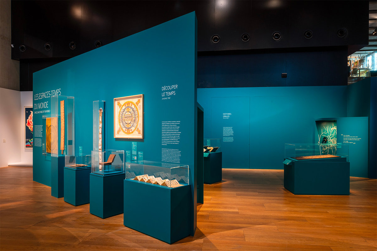 Le parcours scénographique faisait coïncider le fond avec la forme, le public se trouvant en permanence invité à faire un pas de côté, quitter le centre de la carte, perdre le Nord et l’An Zéro. Le concept proposait en effet, le temps de la visite, d’arpenter des histoires dont nous, occidentaux, avons perdu ou oublié la connaissance et le savoir.
